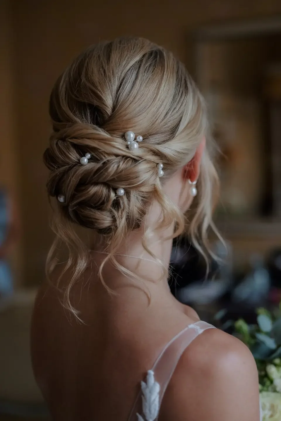 Long-haired brides often gravitate toward updos because of their sophistication and longevity. Popular options include: