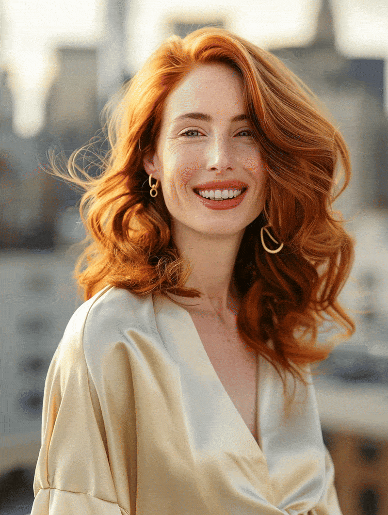 A bold yet wearable red with luminous movement. Styled in polished waves that catch the light, this look offers a glamorous yet effortless downtown edge. Vibrant, confident, and full of energy, it makes a striking statement.